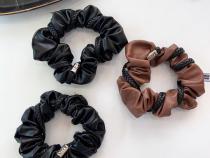 اسکرانچی چرم مشکی قهوه ای دور پیچ